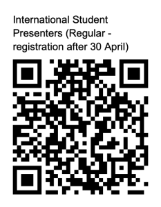 For Conference Registration for the International Presenters/Participants, you can use your phone to scan the QR codes to pay by your Credit Card. Otherwise, you can also click the appropriate links below to conduct the transactions.